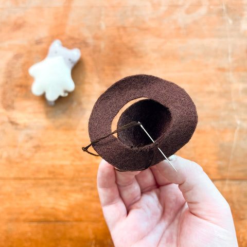 Next, sew the cone to the brim all the way around using small stitches. We used a